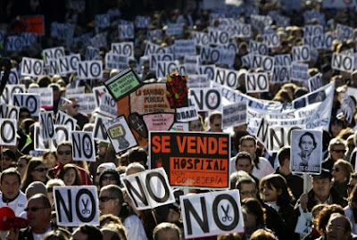 La sanidad pública, junto con la educación, se ha convertido en un jugoso pedazo del pastel que el capital privado espera repartirse en el banquete de la crisis. La Sanidad S.A. ya ha llegado. En nuestras manos está evitarlo.