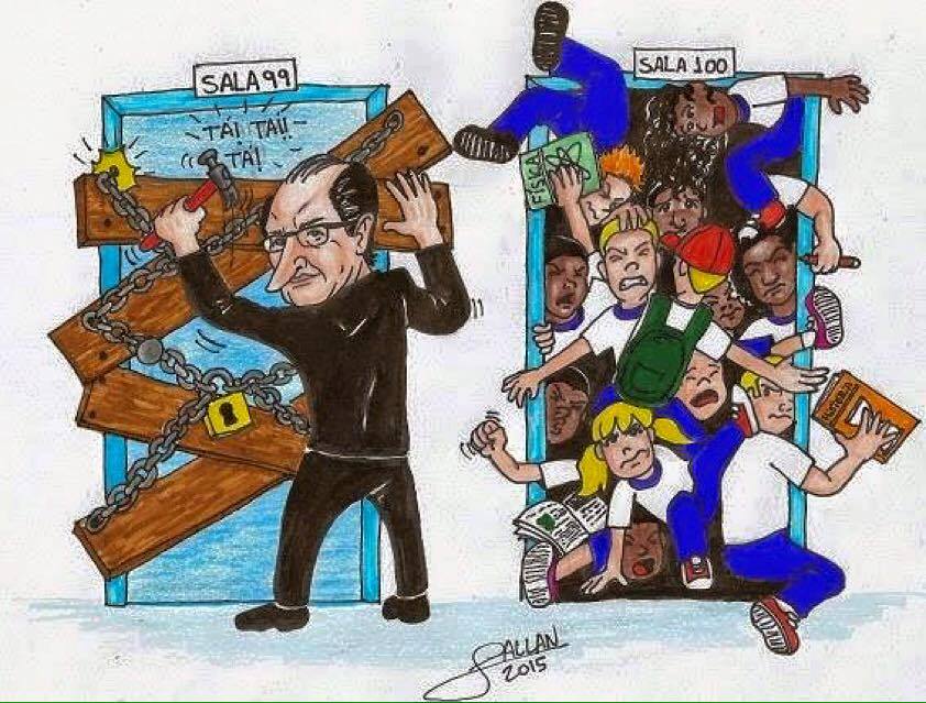 A nefasta "reorganização" imposta por Geraldo Alckmin vai resultar no fechamento de 94 escolas e na transferência de mais de 310 mil alunos, que superlotarão as salas já existentes. O objetivo maior da medida, escamoteado pelo governo tucano, é conter gastos públicos - e não à alardeada melhoria da qualidade do ensino. A mídia chapa-branca, tão corrompida pelos anúncios publicitários e outras benesses do Palácio dos Bandeirantes, evita dar destaque para os efeitos destrutivos desta medida. Ela prefere dar prioridade para as "explicações oficiais". As enormes passeatas juvenis, porém, pegaram de surpresa o governador e a sua mídia venal, conforme atestaram editoriais da Folha e do Estadão.