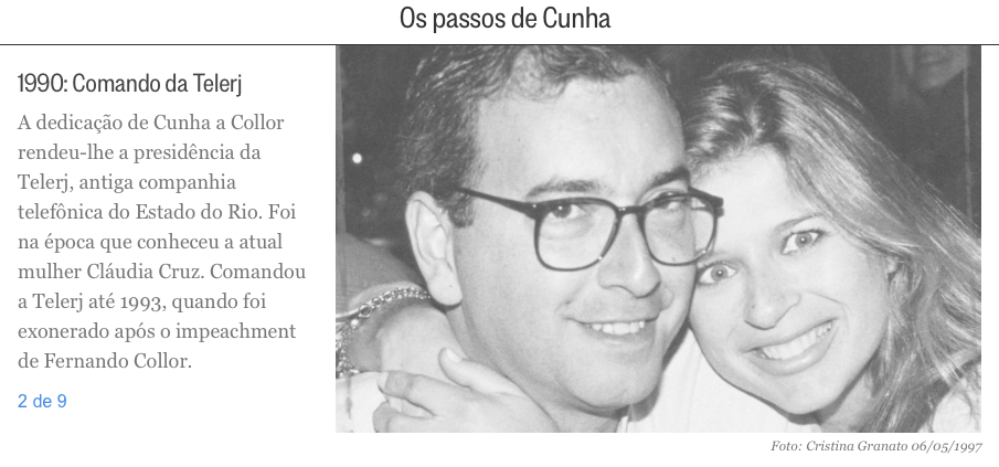 A situação ganha ares de retoque de fotos do stalinismo em que personagens somem. Numa matéria pós julgamento do Supremo, chamada “Os Passos de Cunha”, assim é descrita a maneira como ele conheceu a mulher: