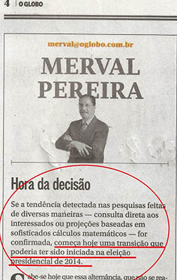 Na coluna. Merval ainda diz que é simplificação afirmar que uma presidente honesta está sendo destituída por corruptos. Não, Merval, não se trata de simplificação. Trata-se sim de uma verdade irrecorrível: políticos acusados de roubalheira – e Cunha é apenas um deles – estão destituindo uma presidente honesta que foi escolhida pelo voto popular. Errou muito, tem responsabilidade por parte da crise que o país vive,mas não roubou e nem cometeu crime de responsabilidade como exige a Constituição. Logo, está sofrendo um golpe.