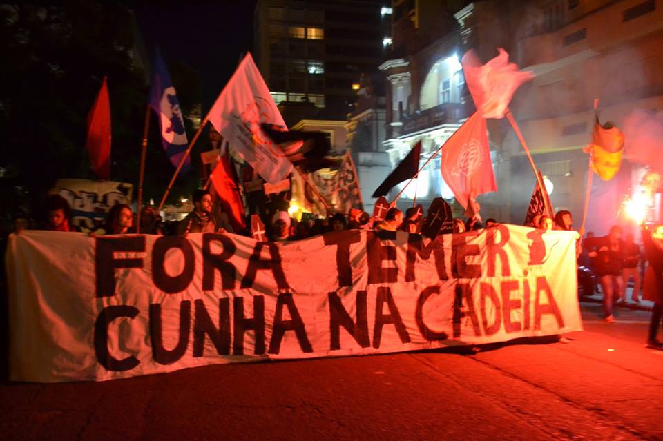 Dentre os diversos grupos e pessoas presentes, era possível identificar faixas relacionadas ao movimento de mulheres e da cultura, setores ameaçados pelo governo de Temer. A multidão, que chegou a reunir 20 mil pessoas, segundo os organizadores, seguiu então pela rua Duque de Caxias, cantando “ai, ai, ai, ai, empurra o Temer que ele cai”. Os gritos de “fora Temer” e “Temer, ladrão, teu lugar é na prisão” foram alguns dos mais entoados ao longo da caminhada.