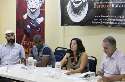 O Coletivo Futebol, Mídia e Democracia, fundado a partir do Centro de Estudos da Mídia Alternativa Barão de Itararé, promoveu um debate nesta terça-feira (11), em São Paulo, para marcar o lançamento de seu manifesto. A atividade contou com a presença do jornalista e blogueiro Luiz Carlos Azenha (Viomundo), da repórter Camila Mattoso (ESPN Brasil) e do ex-jogador Adauto, campeão brasileiro pelo Atlético/PR em 2001 e atualmente no Sport Club Atibaia.
