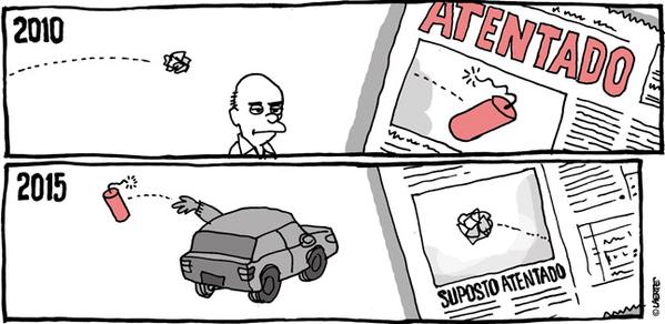 Atacar as forças progressistas brasileiras têm sido a tônica dos golpistas, do fundamentalismo religioso e da oposição oportunista, que desta vez, na busca pelo poder, flerta abertamente contra o Estado Democrático de Direito. Em vez do debate de ideias, trazem à tona a violência, inflada por veículos de Comunicação sem compromisso com o direito ao contraditório. Quantas bombas mais explodirão ao avanço dessa raiva sem sentido, em que a democracia só tende a sucumbir?