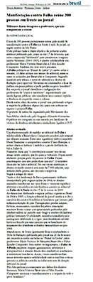 Confesso que, em 2009, fiquei surpreso com a Folha. Tão surpreso que, através deste Blog, convoquei leitores paulistanos a irem comigo para diante do jornal para protestar contra aquela barbaridade.