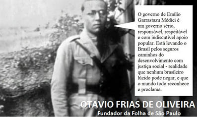 O homem fardado e a declaração proferida por ele que o leitor pode conferir na foto no alto desta página correspondem a Otávio Frias de Oliveira, o falecido fundador do jornal Folha de São Paulo.