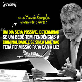 Por Leonardo Sakamoto, em seu blog : “Um dia, nós chegaremos a um estágio no qual seremos capazes de determinar se a criança no útero da mãe tem tendências criminais e, se sim, a mãe não será autorizada a dar à luz.'' A declaração teria sido por Laerte Bessa (PR-DF), relator do projeto de redução ...'Estadão' vira porta-voz da PF