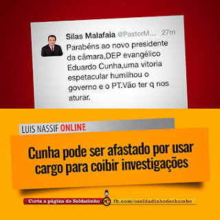Por Altamiro Borges No dia do seu inusitado pronunciamento em rede nacional de rádio e tevê, o lobista Eduardo Cunha conseguiu agitar as redes sociais. Ele bombou em várias hashtags. Uma das mais criativas, #QuemTemCunhaTemMedo, expressa um temor bem verdadeiro. O atual presidente da Câmara Federal é famoso pelos seus métodos truculentos e vingativos. Na ...