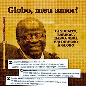 Por Altamiro Borges Meio no ostracismo, depois que cumpriu o papel de carrasco no midiático julgamento do "mensalão do PT", o ex-ministro Joaquim Barbosa postou várias mensagens em seu Twitter de bajulação aos 50 anos da Rede Globo. Talvez do seu suspeito apartamento em Miami, nos EUA, ele disparou: "Parabéns à cinquentona TV Globo e ...