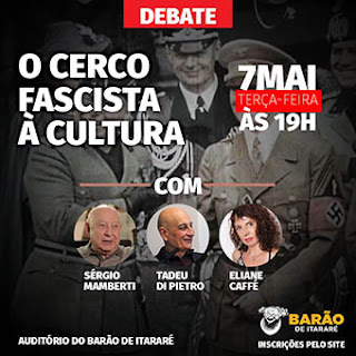 Do site do Centro de Estudos Barão de Itararé : O cerco fascista imposto pelo governo Bolsonaro ao campo da cultura será tema de debate no dia 7 de maio, em São Paulo. A atividade acontece no Centro de Estudos da Mídia Alternativa Barão de Itararé (Rua Rego Freitas, 454, 8º andar, próximo ao metrô ...Bolsonaro é um espertalhão ou um burro?