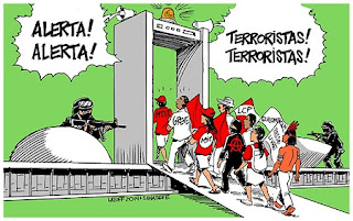 Do blog Viomundo : Aconteceu nesta tarde em Brasília a Marcha Mulheres Negras. Um manifestante não identificado ainda – que participa dos acampamentos golpistas contra o governo em frente ao Congresso Nacional – arremessou bombas caseiras contra os participantes da Marcha das Mulheres Negras. Quando os militantes da Marcha se aproximavam, o homem sacou a ...Manifesto contra a Lei Antiterrorismo