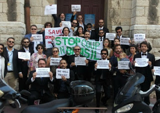 http://ajusticeiradeesquerda.blogspot.com.br/ Por Adolfo Pérez Esquivel, no site da Adital : "Não podemos permitir que grupos conspiradores violem a Constituição em nome de sua defesa. Toda Democracia é perfectível, caso conte com a participação social. Hoje, a democracia representativa está em questionamento, na qual o povo vota, fica por quatro anos em estado de indefensibilidade, e ...O golpe e a volta da classe do privilégio