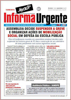 Por Altamiro Borges Na sexta-feira (12), após 89 dias em greve, os professores da rede pública de São Paulo aprovaram em assembleia o retorno ao trabalho. Neste longo período, o governador Geraldo Alckmin (PSDB) esbanjou truculência, recusando-se a negociar com o sindicato, cortando o ponto dos grevistas e fazendo inúmeras ameaças. Recém-lançado na convenção estadual ...PSDB-SP lança Alckmin; Aécio virou pó?