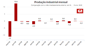 Por Fernando Brito, no blog Tijolaço : Nem escrevi ontem sobre a queda das previsões do PIB porque algo que acontece 18 vezes seguidas não é notícia, é rotina. Melhor falar hoje, agora já diante de um novo fiasco, o da produção industrial, que caiu 0,2% em maio sobre abril e acumula uma perda de ...Seis meses de retrocessos em larga escala