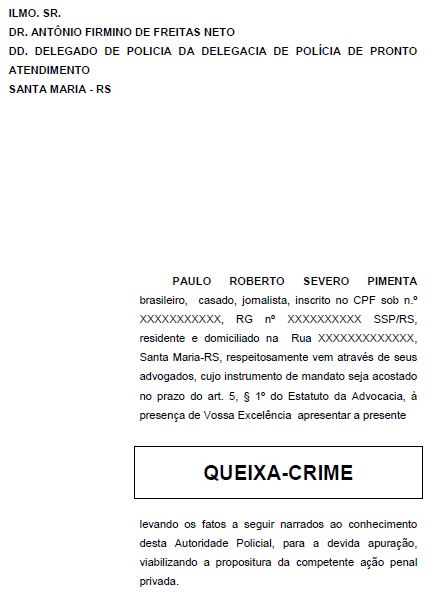 29 de Janeiro de 2013, 22:00 - sem comentários aindaO deputado federal Paulo Pimenta (PT-RS) foi alvo na noite de segunda-feira (28 de janeiro) de um ataque criminoso articulado por grupos de extrema direita no país (link) . O parlamentar já encaminhou Queixa-Crime à Delegacia de Polícia de Pronto Atendimento de Santa Maria, solicitando abertura de inquérito para investigar e identificar autores e a origem das calúnias criminosas com conteúdo falso, que circulam na internet, responsabilizando criminalmente os autores.