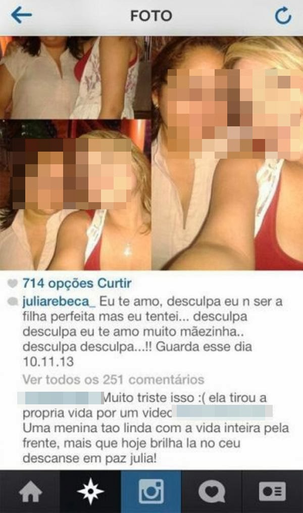 No último dia 10 de novembro, uma adolescente de 17 anos foi encontrada morta, dentro de seu quarto, enrolada num fio desses aparelhos de fazer "chapinha" no cabelo. Julia Rebeca chegou a anunciar o suicídio pelo Instagram.