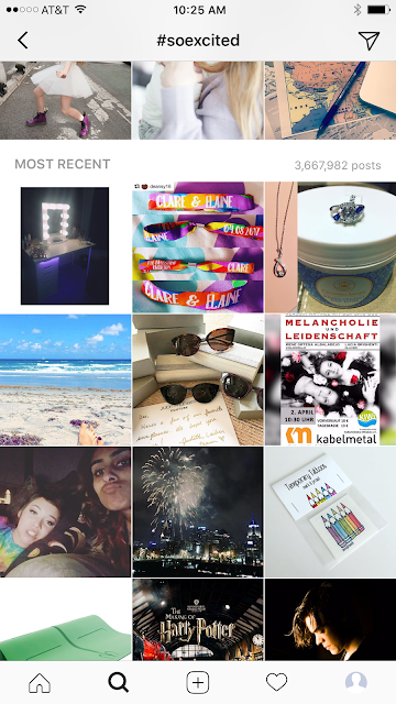 Aqui está apenas um exemplo. Na primeira imagem, você vê a foto original completa com as duas hashtags #soexcited e #howheasked.