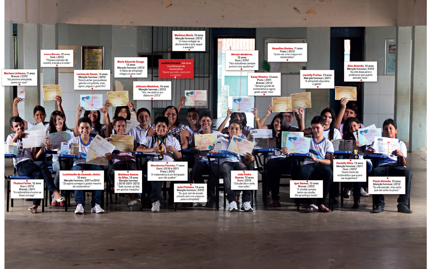 Outro dado surpreendente: a cidade registra uma migração de alunos de escolas particulares para as públicas. No ano passado, sete garotos se transferiram para o colégio de Jonilda. O que eles queriam? Se dar bem na olimpíada. Luciclaudio de Azevedo Júnior, de 12 anos, que já ganhou duas menções honrosas (2011 e 2012), seguiu esse caminho. A mãe do garoto, Dannielle Garcia, não concordava com a mudança. Tinha medo do ambiente que o filho encontraria e de como se relacionaria com os novos colegas. “Existe um grande tabu em relação à escola pública”, afirma Dannielle. “Eu só cedi porque meu filho insistiu muito, mas foi a melhor coisa que fiz. Hoje, nem preciso mandá-lo estudar. Ele vai sozinho e gosta de todas as matérias.” Aqui, nota-se outro sintoma da febre que se alastra pelo município: embora o foco da brincadeira seja a matemática, os alunos em geral apresentam um rendimento mais satisfatório em todas as disciplinas. “O que melhora não é a habilidade de fazer contas”, diz Jonilda. “É a capacidade de raciocínio. E isso serve para as aulas ou qualquer outra coisa.”