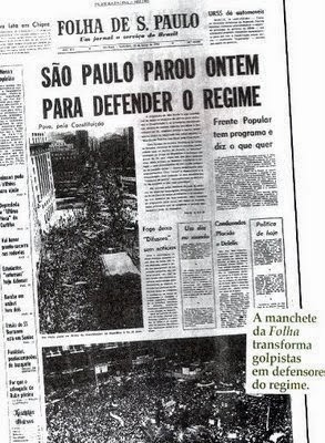 Os grandes jornais paulistas e cariocas atolaram-se com o mesmo entusiasmo. Apoiaram o golpe e a ditadura. A Folha de S.Paulo ficou famosa por emprestar suas caminhonetes para a Operação Bandeirantes transportar “subversivos” para o tronco. Em 22 de setembro de 1971, o jornal de Octavio Frias tecia em editorial o seu mais ditirâmbico elogio ao pior momento da ditadura: "Os ataques do terrorismo não alterarão a nossa linha de conduta. Como o pior cego é o que não quer ver, o pior do terrorismo é não compreender que no Brasil não há lugar para ele. Nunca houve. E de maneira especial não há hoje, quando um governo sério, responsável, respeitável e com indiscutível apoio popular está levando o Brasil pelos seguros caminhos do desenvolvimento com justiça social, realidade que nenhum brasileiro lúcido pode negar, e que o mundo todo reconhece e proclama".