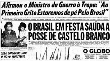 O Globo, em editorial de 2 de abril de 1964, notabilizou-se pela bajulação surrealista: “Vive a Nação dias gloriosos. Porque souberam unir-se todos os patriotas, independentemente de vinculações políticas, simpatias ou opinião sobre problemas isolados, para salvar o que é essencial: a democracia, a lei e a ordem”. Em 7 de outubro de 1984, nos 20 anos do regime, Roberto Marinho reincidiu: “Participamos da Revolução de 1964 identificados com os anseios nacionais de preservação das instituições democráticas, ameaçadas pela radicalização ideológica, greves, desordem social e corrupção generalizada”. Só 49 anos depois do golpe, O Globo publicaria uma retratação contraditória e pouco convincente. Assim foi com outro representante do jornalismo carioca. Em 31 de março de 1973, o Jornal do Brasil comemorava: “Vive o País, há nove anos, um desses períodos férteis em programas e inspirações, graças à transposição do desejo para a vontade de crescer”.