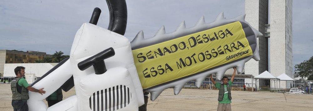 31 de Março de 2013, 21:00 - sem comentários aindaEnquanto o Brasil ferve para derrubar o pastor Marco Feliciano da presidência da Comissão de Direitos Humanos e Minorias (CDHM) da Câmara, um silêncio de cemitério generalizado permite que o ruralista Blairo Maggi, ganhador da Motosserra de Ouro do Greenpeace alguns anos atrás e hoje presidente da Comissão de Meio Ambiente (CMA) do Senado, trabalhe em paz aguardando, com seus colegas de latifúndio, a próxima lei ambiental para rejeitar e a próxima lei pró-ruralismo para aprovar.