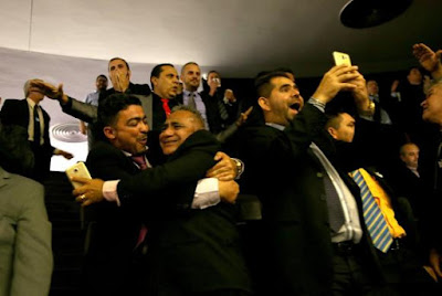 | Taxistas comemoram aprovação do projeto de lei que trata da regulamentação de serviços de transporte individual privado por meio de aplicativos, como o Uber (Imagem: Wilson Dias/Agência Brasil) |