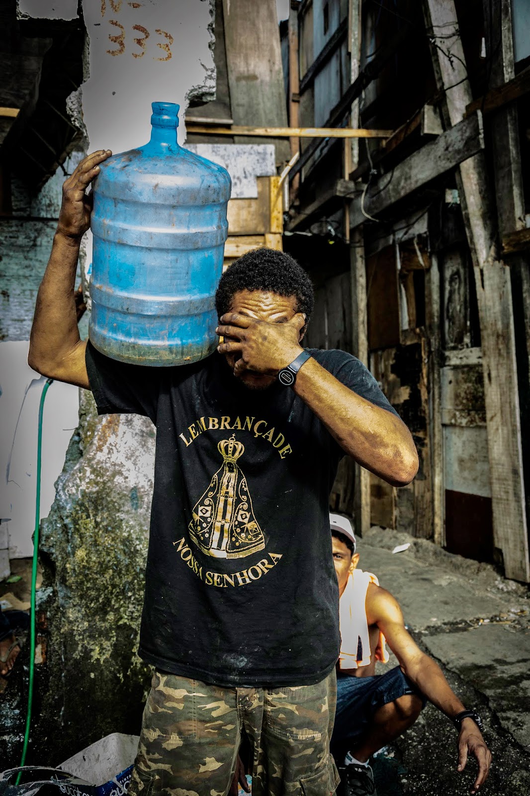 Há um mês, a favela sofreu um incêndio que acabou com todas as coisas, e a esperança de 500 famílias que ficaram desabrigadas, sem nada; apenas as cinzas que sujam, de um preto que não sai nem do chão, nem dos poucos colchões que conseguiram salvar. Nem mesmo a comida está limpa, assim como as roupas e as caras das crianças...