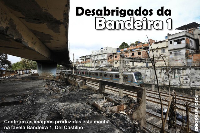 Desabrigados por conta do incêndio ocorrido no dia 15 de maio de 2013, os moradores da favela Bandeira 1, em Del Castilho não têm pra onde ir. Neste momento estão em casas de parentes, amigos, igrejas e barracos que ainda restam na própria favela.