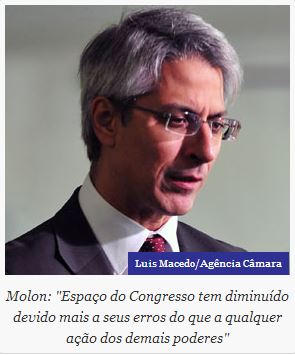 Molon cita dois exemplos que, no seu modo de ver, comprovam sua tese: o rolo compressor que permitiu aprovar – com o voto da maioria dos parlamentares do PT e da base governista – a Lei dos Royalties, tornando letra morta receitas previstas nos orçamentos de estados e municípios produtores de petróleo e gás, e a defesa que muitos parlamentares fazem da PEC 215/2000, que transfere do Executivo para o Legislativo o poder de demarcar terras indígenas. Nos dois casos, acredita, o Congresso viola a Constituição Federal, seja impondo mudanças súbitas de regras que jogam no lixo o pacto federativo, seja tentando avançar indevidamente sobre outros poderes da República.