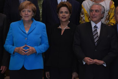 | A chanceler alemã, Angela Merkel, a presidenta Dilma Rousseff e o vice-presidente Michel Temer foto Valter Campanato/Agência Brasil |