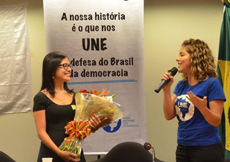 Parlamentares de diversos partidos saudaram a nova diretoria da UNE que, pela primeira vez, tem uma sucessão entre mulheres e a presidência e vice serão ocupadas também por dirigentes femininas. Representantes da ainda pequena bancada feminina também estiveram presentes, entre elas: Jandira Feghali, Erika Kokay, Vanessa Grazziotin, Jô Moraes, Luciana Santos, Alice Portugal e Benedita da Silva. “Junto com a UNE, quero ter a esperança de que a negrinha lá de casa, de apenas 3 anos, vai crescer tendo orgulho de ser mulher e negra nesse país. Sabendo que poderá estudar junto com os brancos nas melhores escolas. E é esse sonho que eles querem enterrar”, bradou Benedita.