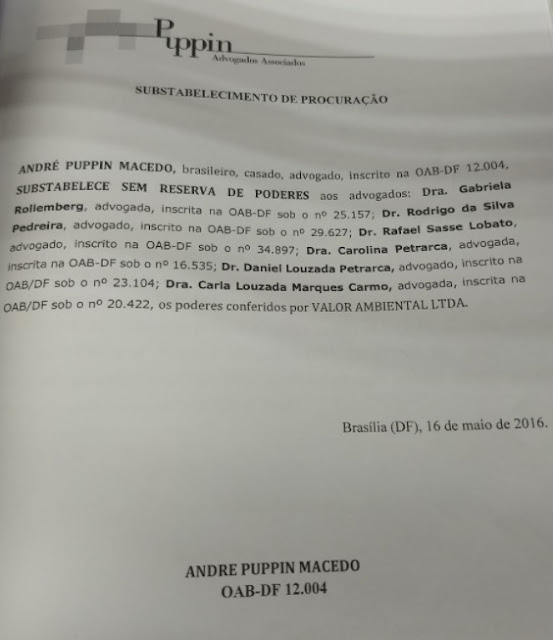 3. O contrato de prestação de serviços para representar a empresa Valor Ambiental exclusivamente em processos trabalhistas é atendido pelos escritórios Petrarca Advogados e Gabriela Rollemberg Advocacia, que atuam em parceria em centenas de processos judiciais nas mais diversas instâncias do Poder Judiciário. Em nenhum destes processos há sequer interesse difuso ou lateral do GDF.