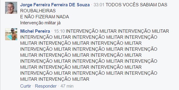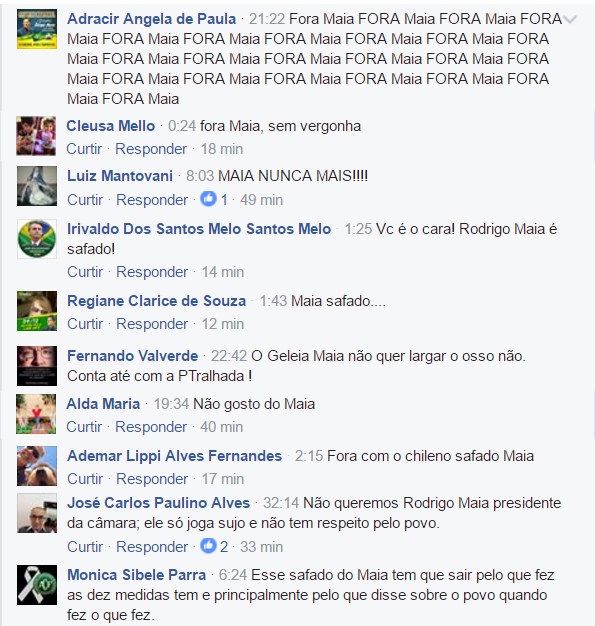 Os internautas não pouparam nas baixarias, só o atual presidente da Câmara Rodrigo Maia, DEM/RJ, recebeu mais de 200 ataques, além de inúmeros pedidos de intervenção militar.