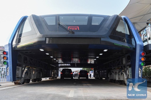 O primeiro teste aconteceu no começo do mês de agosto, na cidade de Qinhuangdao, província de Hebei. O ônibus elevado vai suportar mais de 300 passageiros e terá cerca de 22 metros de comprimento, 4,8m de altura e 7,8m de largura, o que o torna suficiente para circular sobre duas faixas, trazendo, assim, alguns benefícios como a diminuição do trânsito das grandes metrópoles chinesas, mais rapidez no transporte público e redução da poluição no país.