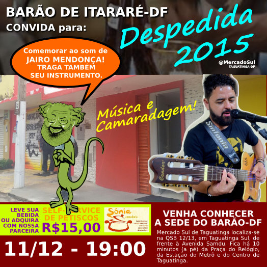 Festa de despedida do ano de 2015 do Barão de Itararé/DF, será realizada no Beco da Cultura