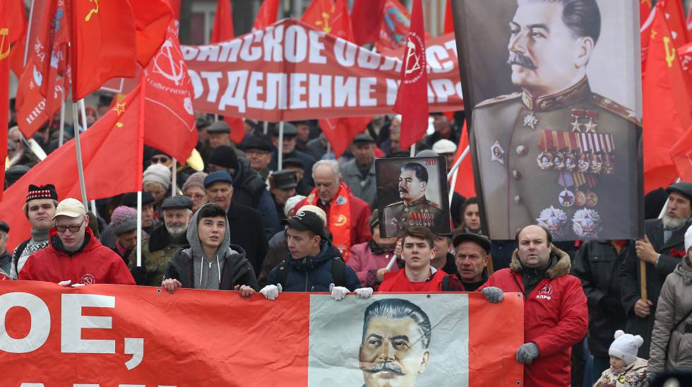 | Manifestação do Partido Comunista Russo para comemorar a Revolução de Outubro de 1917, em 7 de novembro GETTY IMAGES |