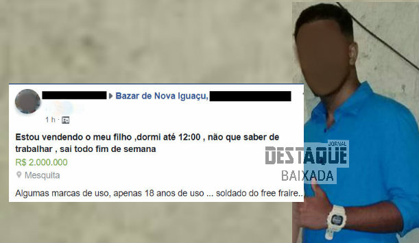 "Estou vendendo o meu filho, dorme até 12:00hs, não quer saber de trabalhar, sai todo fim de semana", escreveu Cristina, que mora com o filho em Mesquita, na Baixada Fluminense.