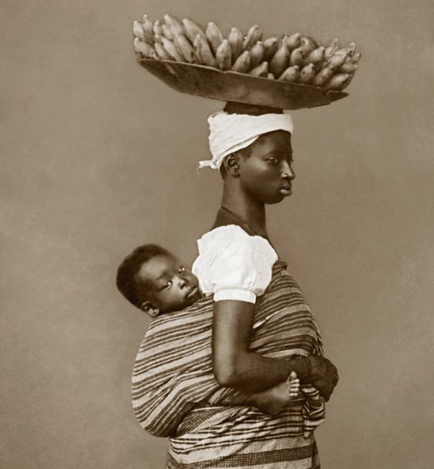 | Escrava trabalhando mesmo que com o filho a tiracolo |