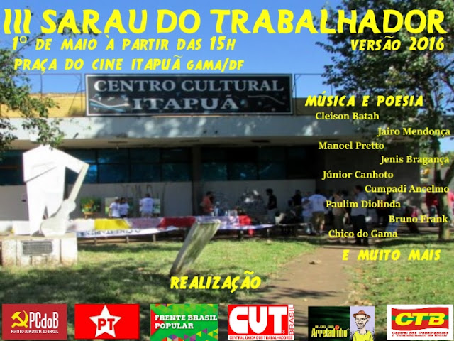 April 27, 2016 18:26No próximo domingo, 1º de maio, estão todas e todos convidados para participar de uma grande festa na Praça do Cine Itapuã no Gama. Vamos juntos comemorar o Dia dos Trabalhadores