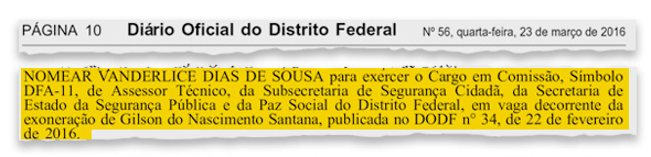 Ao ser questionada sobre a nomeação de Vanderlice, a Secretaria da Segurança Pública disse que “a servidora mencionada foi nomeada em cargo compatível com seu nível de escolaridade e que, desde então, desempenha funções administrativas na secretaria”. Ainda por meio de sua comunicação social, a pasta sustentou que “não há nenhuma irregularidade administrativa na nomeação da assessora”.