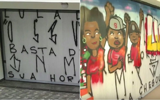 Jovens revertem vandalismo no Instituto Lula com grafite