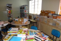 | Biblioteca sem organização e rachadura em sala de aula. Fotos: MPF/MS |
