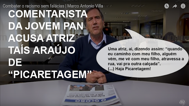 Villa chamou Taís de “picareta” por, supostamente, ela ter inventado que, no Brasil, as pessoas confundam negros com bandidos por conta da cor da pele. Eu poderia citar o caso do jovem ator negro que foi espancado por assaltantes próximo a uma estação de metrô de São Paulo porque os seguranças da estação o entregaram aos assaltantes após ele ir pedir ajuda porque os assaltantes eram brancos e o ator, negro.