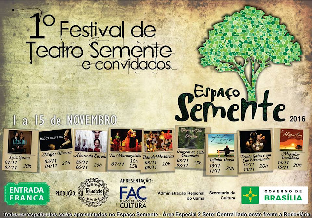 octubre 27, 2016 19:16O 1º Festival de Teatro Semente e Convidados será de 1 a 15 de novembro no Gama