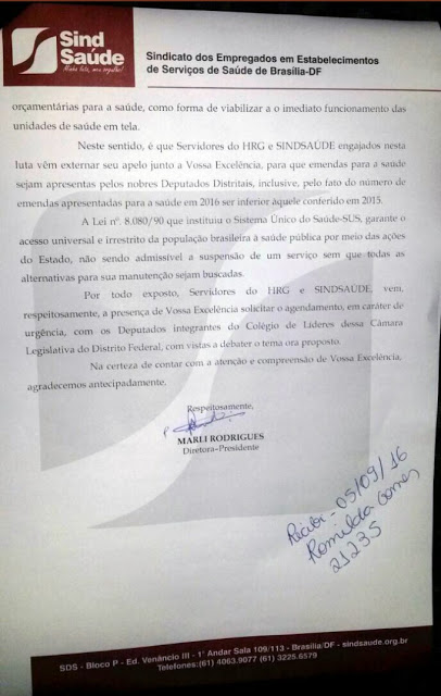 A diretoria do SindSaúde vai, nesta terça-feira (6) até o Colégio de Líderes da Câmara Legislativa para reivindicar aos deputados que destinem suas emendas para a saúde, que sofre a tempos com o sucateamento programado por corruptos que passaram pelo poder, que não pensaram no futuro.