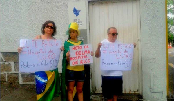 enero 7, 2016 22:22Estou há mais ou menos 4 horas tentando escrever um texto sobre esta foto, onde três pessoas (?) estão na entrada do hospital onde nasceu o neto da presidenta Dilma, mas as palavras que quero escrever creio que não sejam convenientes.