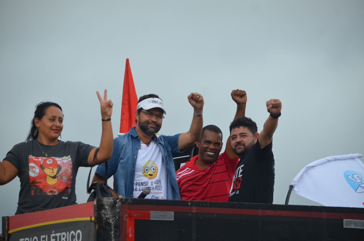 Durante o percurso inúmeras lideranças sindicais revesaram-se ao microfone para dialogar com os trabalhadores que não aderiram a greve e com a sociedade de um modo gera.