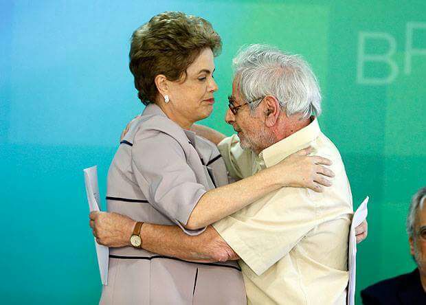 Na foto, Raduan e Dilma, quando, na iminência do golpe, ele saiu de sua fazenda, o que raramente faz, e foi à Brasília, para dar o seu abraço de solidariedade.
