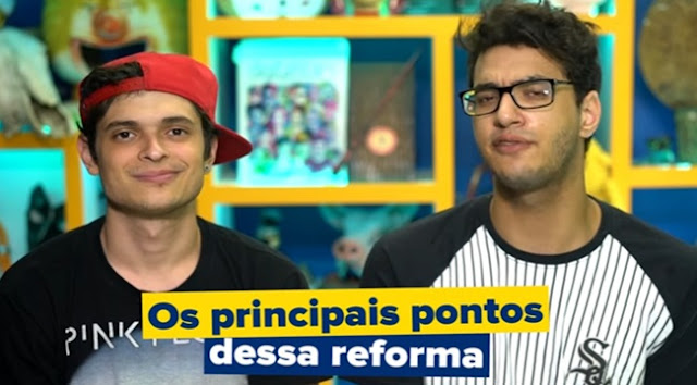 “Com esse vídeo você aí deve estar dando pulo de alegria. Se eu tivesse que fazer o ensino médio e soubesse dessa mudança eu ficaria muito feliz“, diz um dos apresentadores. Também são destacados aspectos da reforma como a possibilidade do estudante escolher áreas de conhecimento para se aprofundar.