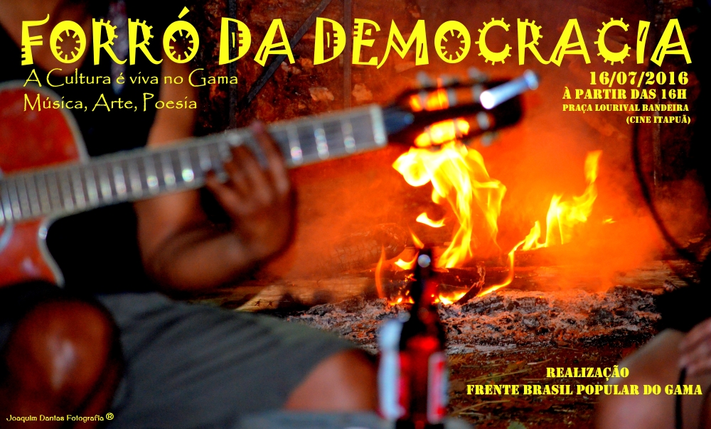A Frente Brasil Popular do Gama, composta por representantes do PCdoB, PT, PDT, PSol e PCO, realizarão no próximo sábado (16), o evento político-cultural "Forró da Democracia", na Praça Lourival Bandeira (Cine Itapuã), à partir das 16h.