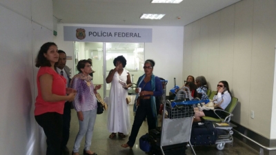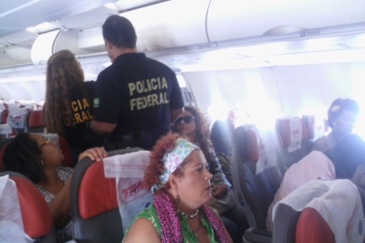 Um grupo de 73 mulheres que vieram à brasília para participar da 4ª Conferência Nacional de Políticas para Mulheres, que está sendo realizada no Centro de Convenções Ulisses Guimarães no centro da capital, foram detidas pela Polícia Federal no início da tarde desta terça-feira (10) e mantidas a bordo da aeronave da TAM que fazia o voo 3437, no trecho Salvador/Brasília.